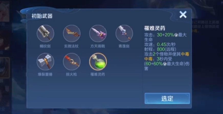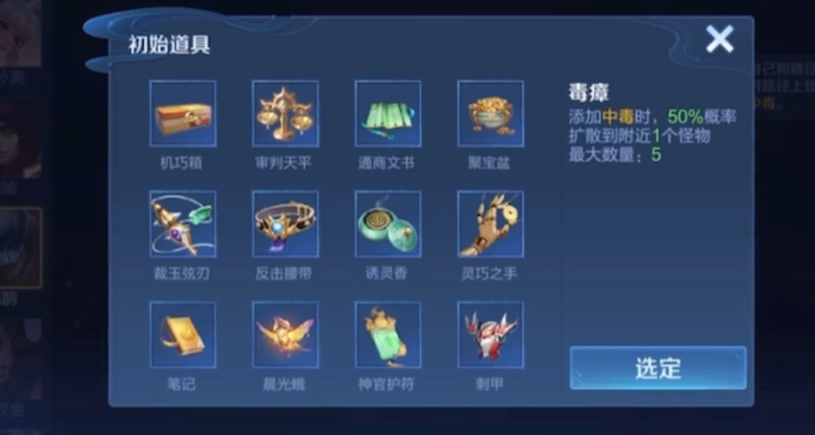 1.首先推荐英雄为【扁鹊】,初始道具为【毒瘴】,初始武器为【灾厄丹】;