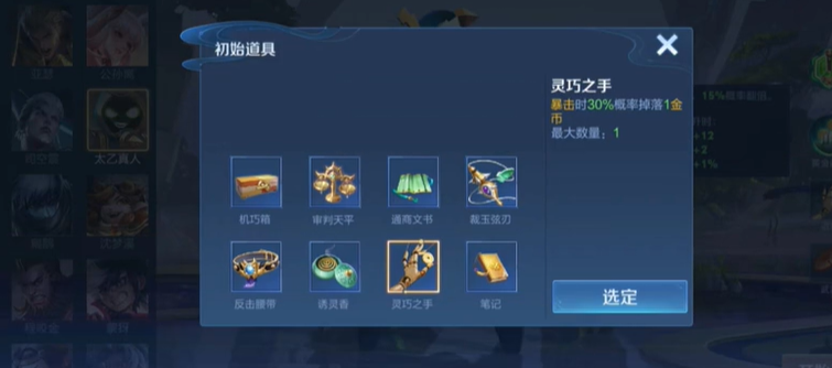 1.首先推荐英雄为【太乙真人】,初始武器为【一真丹凤】,初始道具为【灵巧之手】;