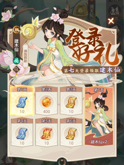 2、累计登录:累计登录7天,第7天即可领取英雄【剑木仙】。