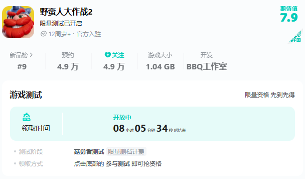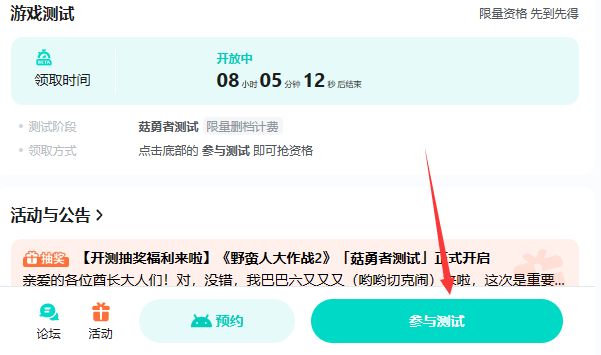 2、点击游戏下方【参与测试】即可获得测试资格。