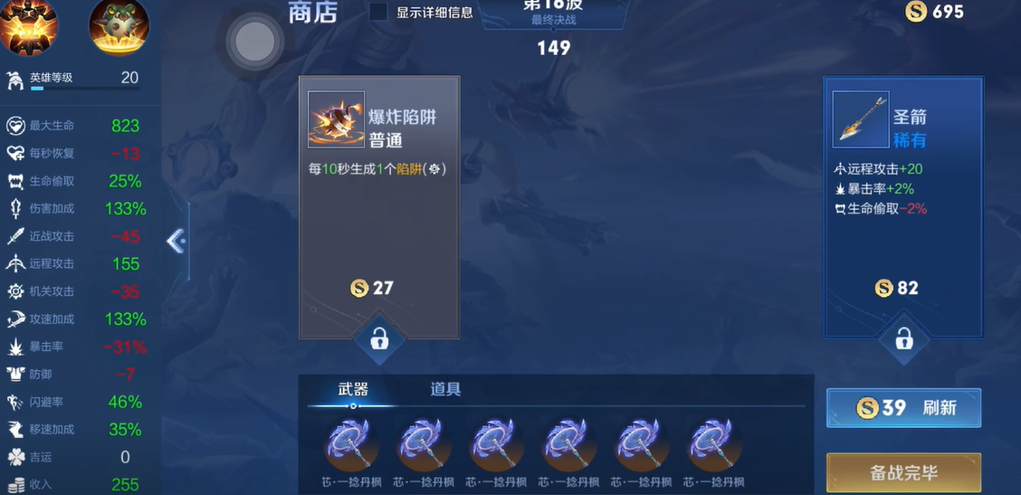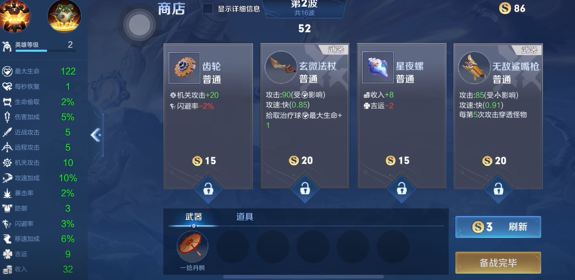 2.游戏内的战斗商店中,武器、攻速、生命偷取、攻击、伤害加成优先;