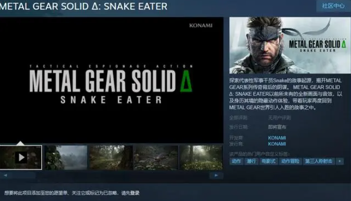 一、购买链接:https://store.steampowered.com/app/2417610/METAL_GEAR_SOLID__SNAKE_EATER/