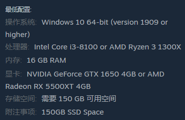 显卡:NVIDIA GeForce GTX 1650 4GB 或AMD Radeon RX 5500XT 4GB