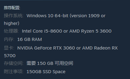 显卡:NVIDIA GeForce RTX 3060 或AMD Radeon RX 5700