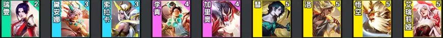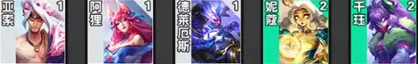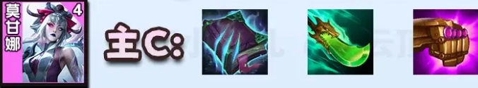 3.九人族:后期阵型变化:凯隐装备猴子,莫甘娜装备回族。