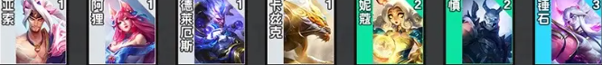 一、成员:加里奥+锐雯+凯隐+卡兹克+戴安娜+凯尔+莫甘娜+索拉卡+婕拉
