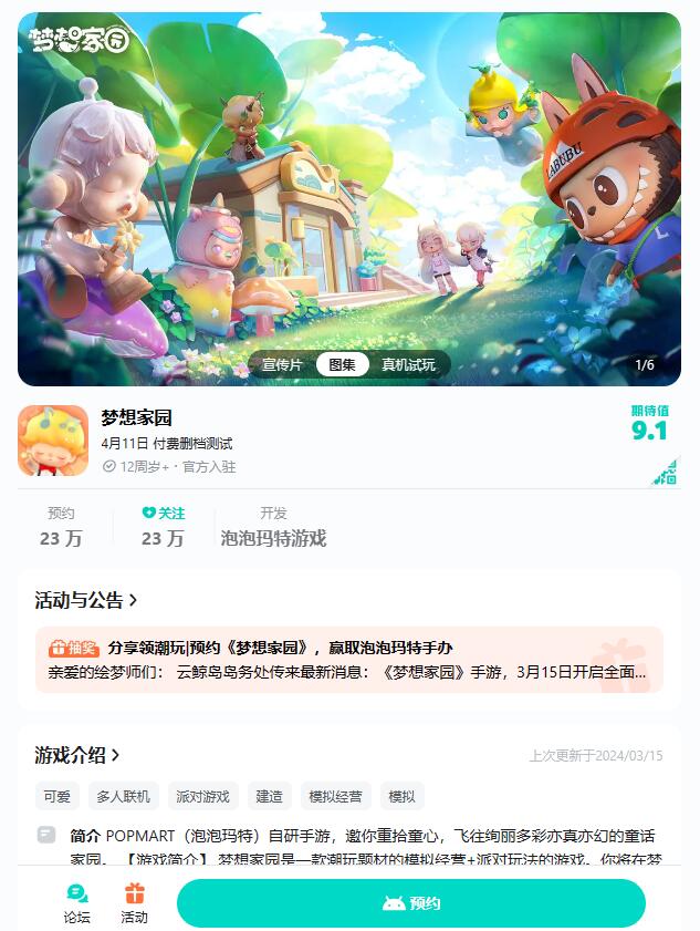 《梦想家园》手游现已开放预约。很多朋友不知道去哪里预约。其实我们只需要去官网和taptap网站进行预订即可。具体网站内容如下。大家可以直接进入预约。我们来看看梦想家园手游预约网站入口。