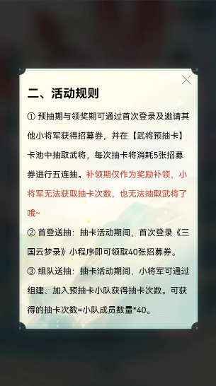 答:完成微信小程序【三国云梦露预约站】指定任务即可参与预抽卡
