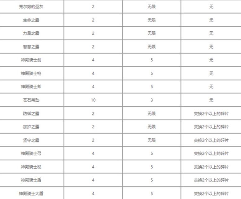 11.持久之露:交换2个以上天空碎片后解锁