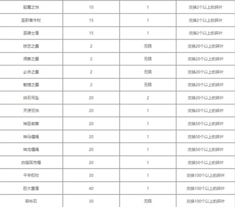 圣兽之王天之碎片可交换物品大全