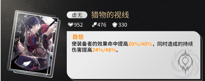 分析:允许佩戴者对陷入负面效果的敌人造成最高的伤害值。释放战斗技能后,命中率可提高18%;