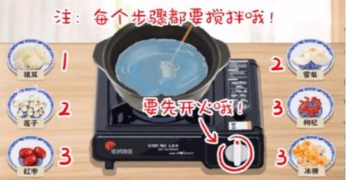 1.玩家需要先开大火,然后倒入银耳搅拌;