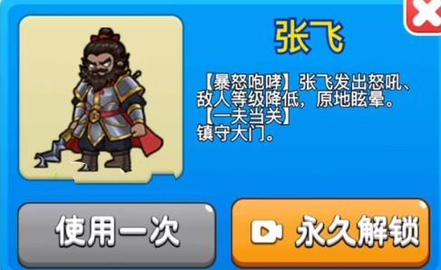 4.可以解锁【张飞藏皮】。5.玩家可以通过观看广告永久解锁张飞隐藏皮肤。