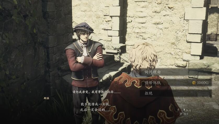 1.首先,我们去王城的道具店,与斯文交谈,选择借钱给他。