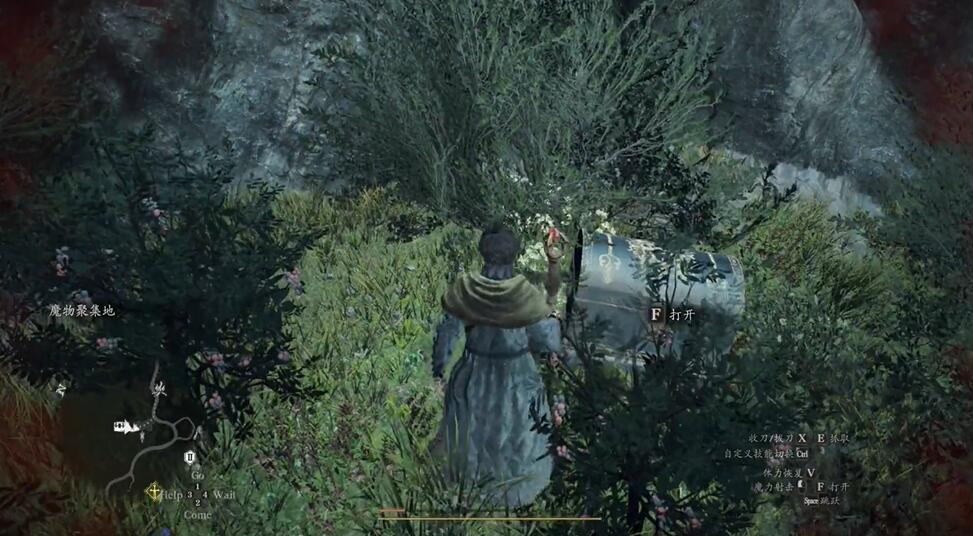 3.然后我们就可以在山壁下面的草丛中找到一个宝箱。