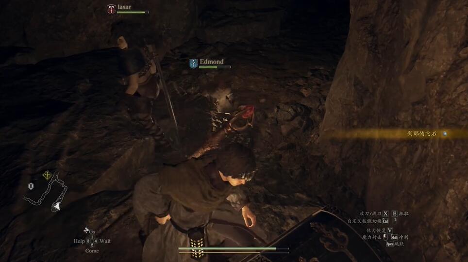 进入山洞后一直往前走,然后往右走,继续往前走就可以在图中所示的位置找到此刻的飞来石。