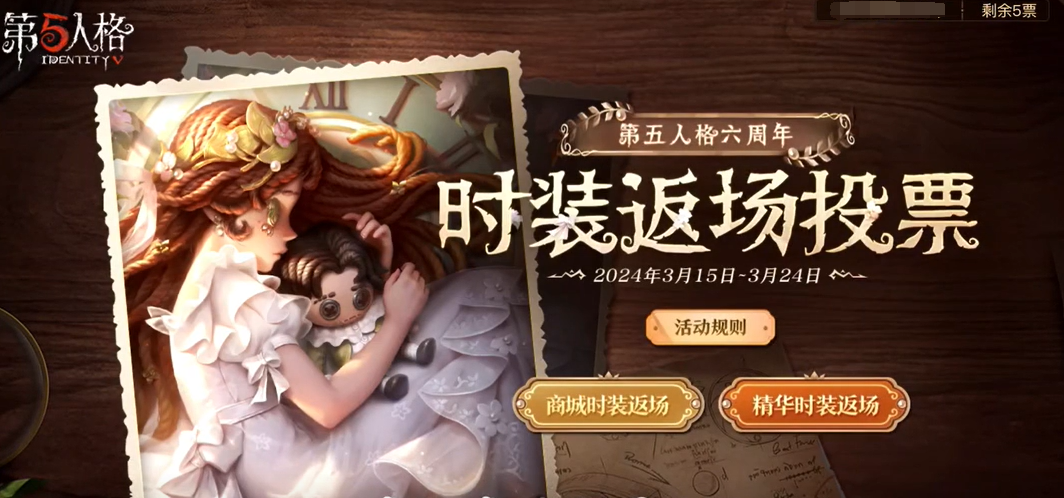 以上就是小编给大家带来的第五人格六周年返场皮肤投票入口的详细介绍。感兴趣的玩家一定不要错过。更多精彩的游戏指南都在这个网站上。