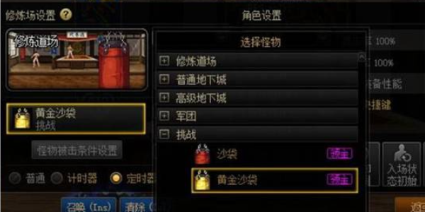 1、选择怪物挑战中的金色沙包,选择计时器进行相应设置;