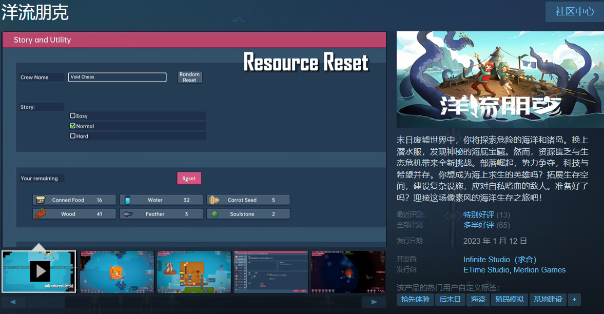 1.《海洋朋克》是一款末世背景的像素风格模拟游戏。