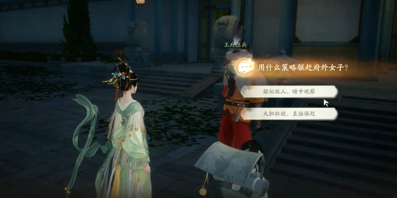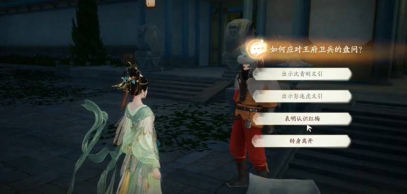 1.一开始与宫廷侍卫对话,选择【与红梅示熟】或【疑似老友,暗中观察】;
