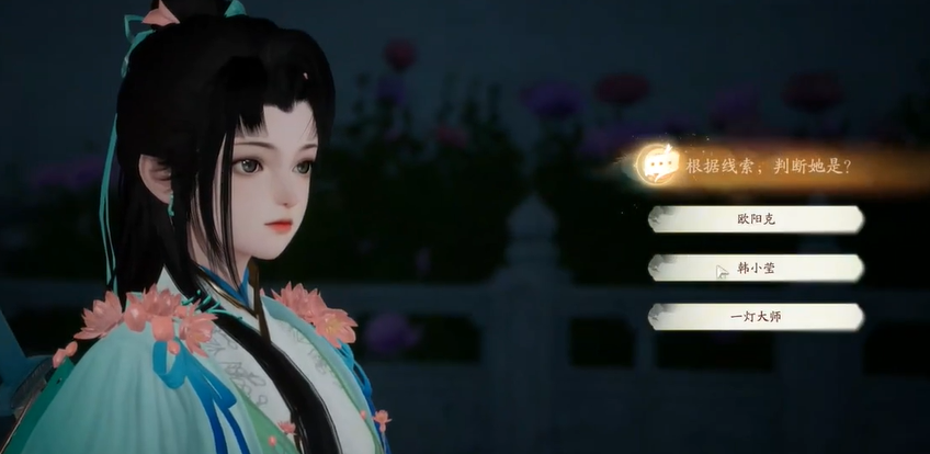 2、去旁边找到青衣女子,选择【韩小英】,在战斗中击败青衣女子;