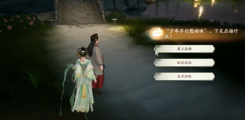 11、与仆人对话中选择【临安春色】,然后帮助【蒲苇】打水;