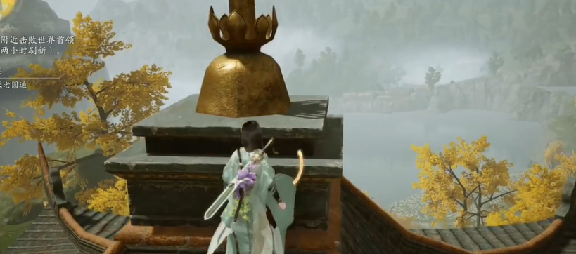 2.先从侧屋顶跳到塔顶。如果此时雨停了,就只能下次再来;