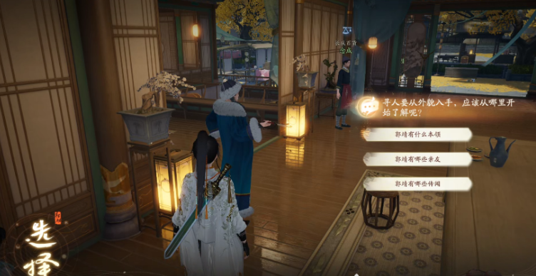 5.与【蒙古特使】对话。您可以选择问题的任何答案。建议选择【关于郭靖的传闻有哪些】?