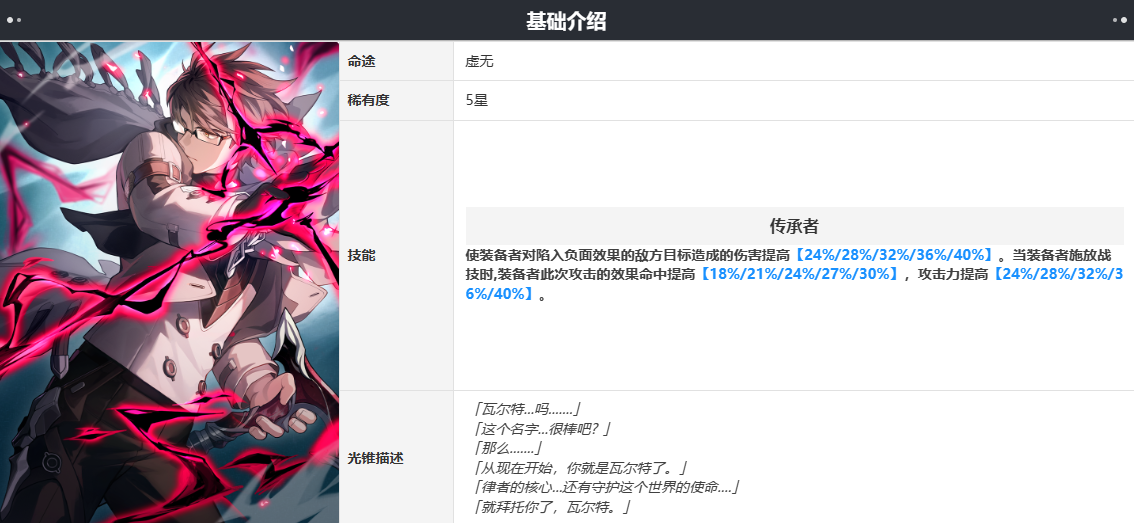 1.该光锥只对虚空命道生效。每当敌方目标受到负面效果时,佩戴者造成的伤害就会增加。