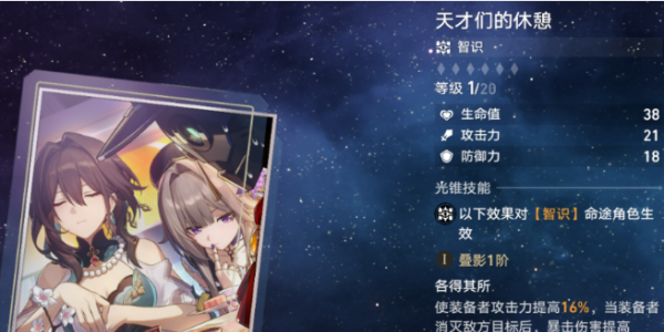 2.增加战斗技能和终结技造成的最大伤害,多次使用时有效释放高输出。