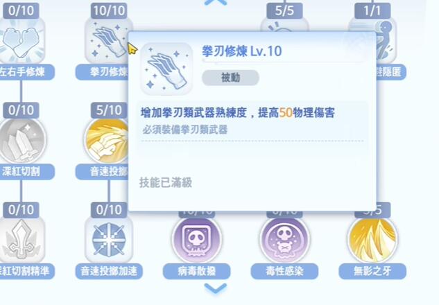 1.爆刺的核心技能是左右手的训练,可以让我们使用两把武器,相当于两倍的伤害。