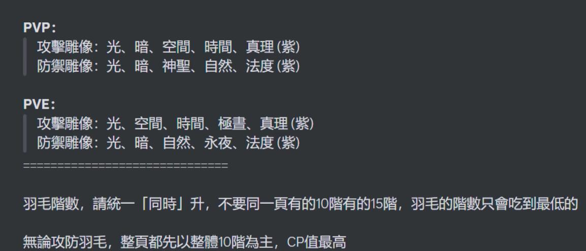 在《仙境传说,初恋如初》游戏中,有很多羽毛可以搭配。很多朋友对于羽毛如何搭配并不是很清楚。其实PVP使用光明与黑暗、空间、时间、真理(紫色),PVE使用光明、空间、时间、极日光、真理(紫色)都能有不错的效果。我们来看看仙境传说一见钟情的具体搭配内容。
