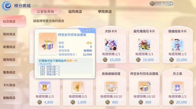 2.其他羽毛在游戏前期比较稀有,但打开公会商店后每个月都可以购买。