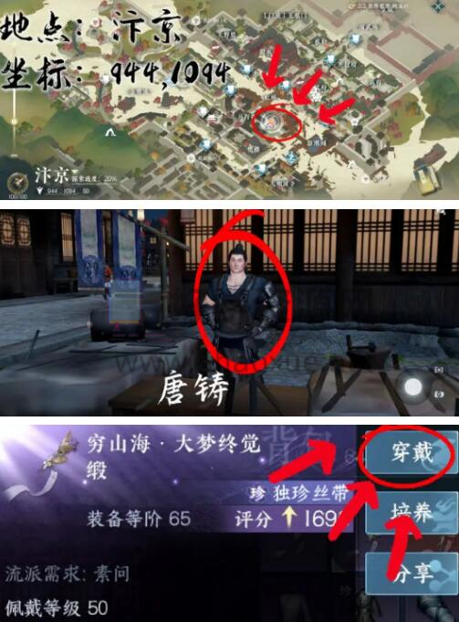 完成方法:返回唐主处,提交琼山海兵甲。获得琼山海大梦绝缎并佩戴。