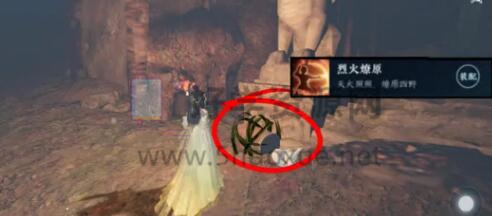2.进入山洞找到被草丛缠住的宝箱,使用江湖技能“火烧草原”烧毁草丛。