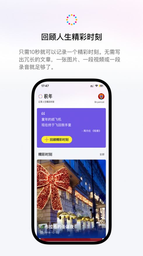 1.“纪年”是一款帮助您回顾、记录生活中精彩瞬间的APP。