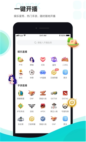 —点击开始直播:娱乐明星节目、热门手游,随时随地直播。