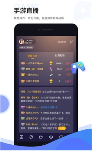 3.优秀的互动体验:领取礼物、在游戏中阅读观众评论、拉近与粉丝的距离。