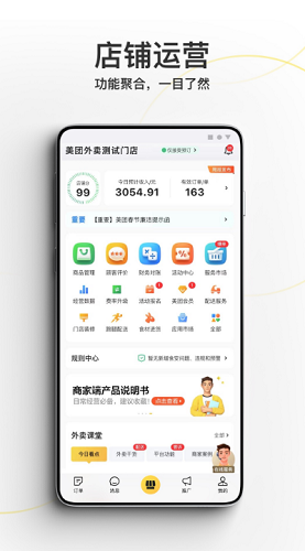 美团外卖商家版是一款供入驻美团的商家使用的管理软件。它是一个可以在移动平台上使用的应用程序。主要功能是接受和处理用户订单、处理提醒、处理退款、在线结算对账、营销门店、管理美团外卖门店、随时调整营业信息和产品库存。让您轻松管理您的店铺