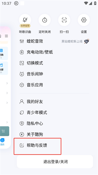 2. 单击“帮助和反馈”。