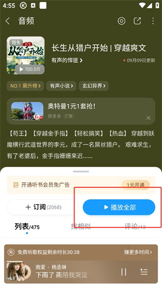 1. 在听力书页面,选择您喜欢的作品进行播放。