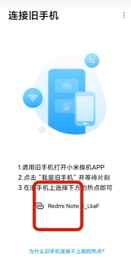 4、然后进入连接旧手机的步骤,记住底部的热点名称;