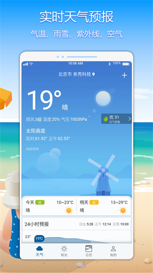 亲壳天气是一款为大家提供免费天气信息的软件。方便了很多朋友查看天气信息。它还具有更全面的内容来支持您的理解。还有其他可以免费进行的数据更改。根据您的个人需求了解并查看今天什么时间适合晒日光浴。