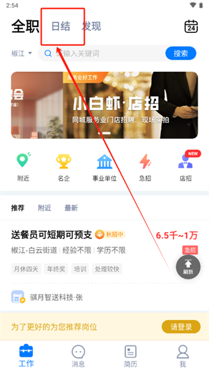 2.提供更多职位,顶部提供“全职”和“日薪”类型。您可以直接选择“按日付费”工作: