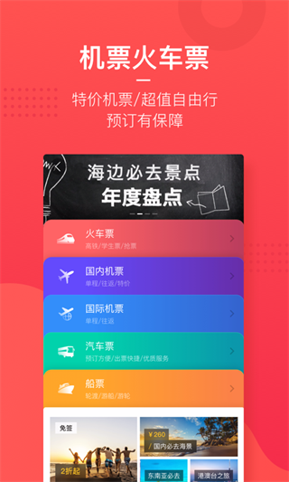 您可以随时随地预订酒店、机票、火车票。同时提供周边游、出境游、跟团游等服务,绝对能满足用户不同的出行需求。
