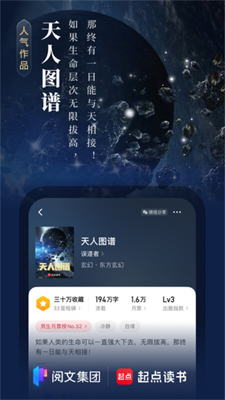 3。每本书都有Qidian阅读中的详细介绍,包括书籍简介,作者信息,章节列表,精彩评论等。