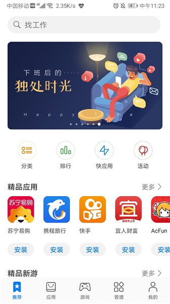 华为应用市场是一款手机自带的应用管理软件。为用户提供丰富的各类软件和游戏下载资源。无论是工作、学习还是娱乐,都能满足您的需求。超简洁的界面设计、多样的分类选项、快捷的下载速度让您轻松享受下载软件的乐趣。它采用简洁大方的设计风格,让用户一目了然地找到自己需要的软件和游戏。主界面清晰,分类标签清晰可见。用户可以根据自己的需求快速找到自己喜欢的应用程序。