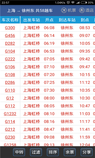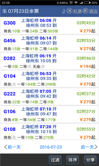 3.程序还为大家提供了智能过滤功能。用户可以根据时间、价格、距离等筛选出相应的列车。