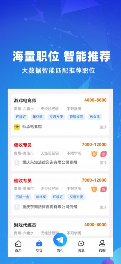 贵才招聘APP是一款提供在线招聘服务的软件。它有很多工作信息。用户可以随时掌握招聘信息,了解企业最新招聘动态,并有在线投简历的支持,帮助用户快速找到好工作。